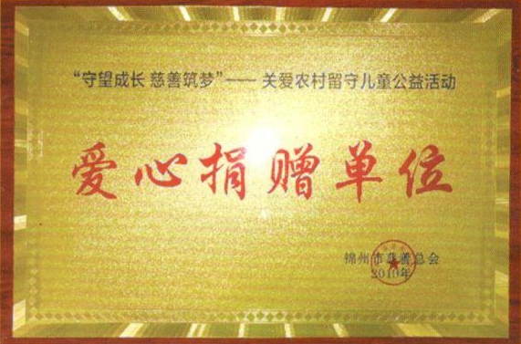 在“守望成長、慈善筑夢”關(guān)愛農(nóng)村留守兒童公益活動中,公司被錦州市慈善總會授予“愛心捐贈單位”榮譽稱號。