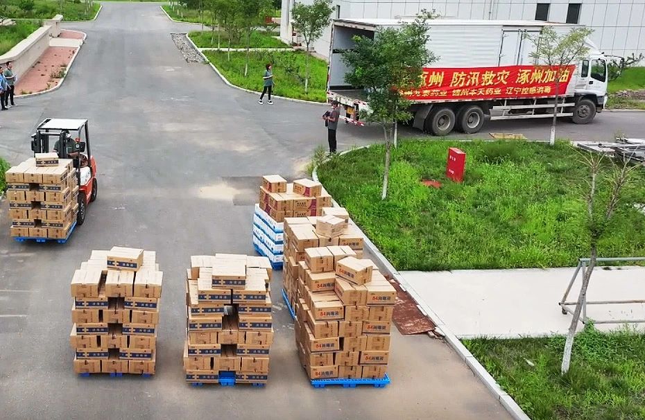 8月5日到7日,錦州九泰藥業(yè)及集團下屬錦州本天藥業(yè)、遼寧控感消毒科技公司三家企業(yè)上下聯(lián)動,全力組織員工從三家企業(yè)庫房緊急調配包括復方氯己定撒粉、復方紫荊皮水楊酸溶液、硫酸慶大霉素碳酸鉍膠囊、蒲地藍消炎片、對乙酰氨基酚片、氨咖黃敏膠囊、乙醇消毒液、84消毒液、碘伏消毒液及消毒片等價值300多萬元的急需藥品及消毒用品。其中消毒消殺用品因庫存不足,企業(yè)臨時決定增加生產計劃,員工加班加點24小時連續(xù)生產,爭分奪秒,將1400余件的救援藥品馳援涿州、五常、舒蘭等地,用于災區(qū)救援,保障受災群眾人身安全,助力災后重建及復工復產等工作。
